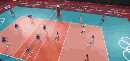 第二局回來1-5落後,中國女排頑強追趕,這段時間打得不錯,通過朱婷和前後排結合,4號比特和2號比特結合,終於追上並6-6,7-7,持續咬住比分。