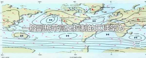 一般副熱帶高壓控制的區域常為晴熱天氣。因為副熱帶高壓內部盛行下沉氣流,故會出現持續性的晴熱天氣,所以當副熱帶高壓長時間控制某一地區時,往往會造成該地區幹旱。