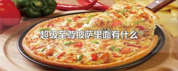 超級至尊披薩裡面有奶酪、牛肉粒、培根、披薩醬、洋蔥、三文治腸、香菇、黑橄欖、青豆、披薩草葉等。披薩又稱為比薩餅、匹薩、批薩、披薩、意大利餡餅,是一種發源於意大利的食品,在全球頗受歡迎。