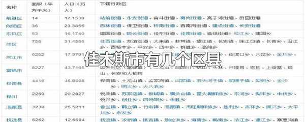 4個區、3個縣、3個縣級市。佳木斯轄向陽區、前進區、東風區、郊區、同江市、富錦市、撫遠市、樺南縣、樺川縣、湯原縣。佳木斯市是黑龍江省地級市,總面積為3.246萬平方千米。