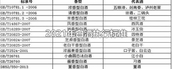 GB/T 10781.1-2006。白酒的執行標準主要是從白酒的香味、運輸方式、材質、是否為地理標志產品、乙酸乙脂含量等方面制訂的,包括國傢強制執行標準、國傢推薦執行標準、地方標準、企業標準。