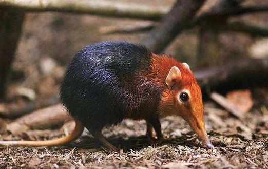 黑象鼩(Rhynchocyon petersi)生活在非洲東海岸的密林之中,是用長鼻子尋找食物的高手。這種小動物的體長不足30釐米,看起來比褐家鼠還小一些。值得注意的是,它們既不是鼠類,也不是鼩鼱,而是一種非常原始的哺乳動物,分類學上屬於“象鼩目”。從親緣關係看,象鼩和大象的關係比和鼩鼱的關係更近。