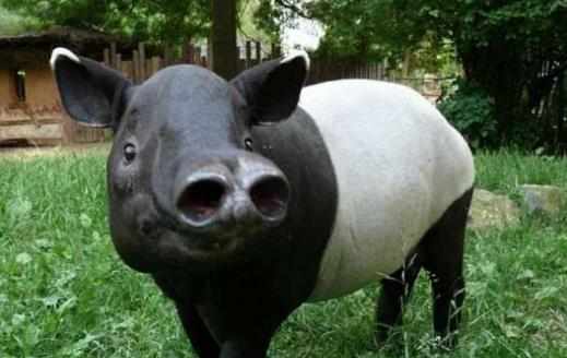 馬來貘(Tapirus indicus)是生活在東南亞地區的大型哺乳動物。它們的體長超過2.5米,是夜行性的素食主義者。這種動物的視力很不好,在森林和沼澤中求生主要依靠敏銳的嗅覺和聽覺。馬來貘的“長鼻子”看起來像“低配版”的象鼻,也是由鼻部和上嘴唇共同組成。馬來貘和大象的親緣關係並不近,相似的鼻子只是趨同進化的結果。