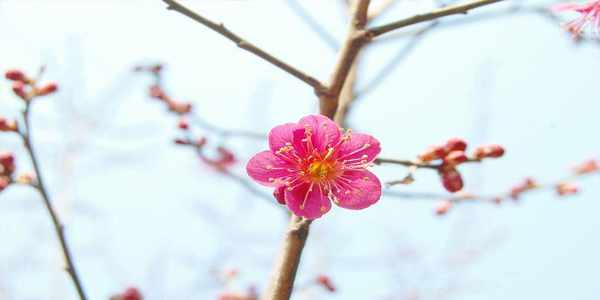 梅花一般在每年的隆冬或初春開放,在寒風中獨自開放,具有堅強、高潔孤傲、堅韌不拔等品質,其顏色一般為粉色、白色,通常種植在庭院中,也有好運、平安、報春等寓意。