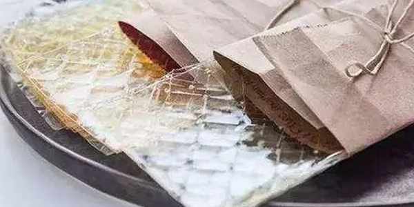 2、形狀不同:吉利丁片為薄薄的片狀,白涼粉為半透明的小立方塊。