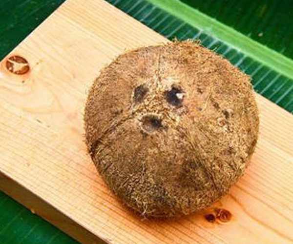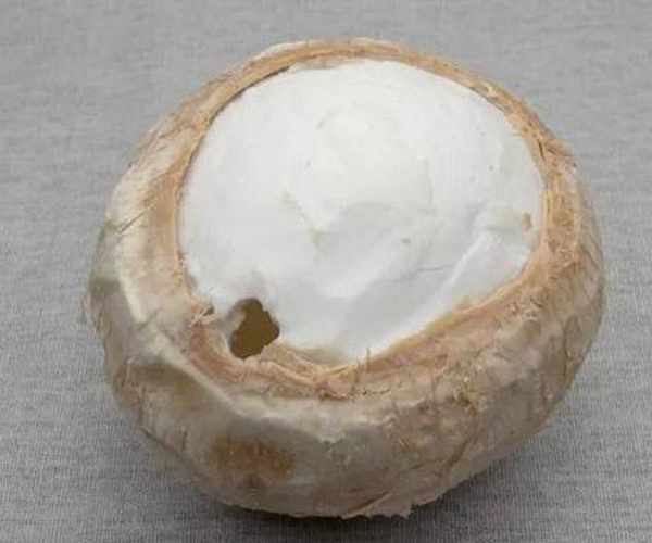 1、在椰子的頂部有三個椰眼,用刀尖將其中一個椰眼打開,將椰子內的椰汁喝掉或倒出。
