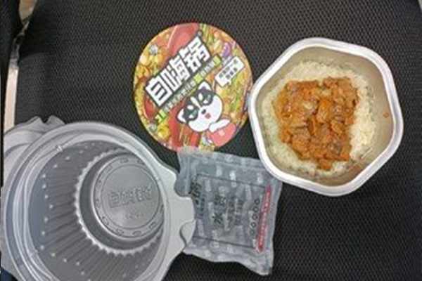 2、將自熱鍋打開後,先將裡面的食物倒進自熱鍋自帶的小塑料碗內。