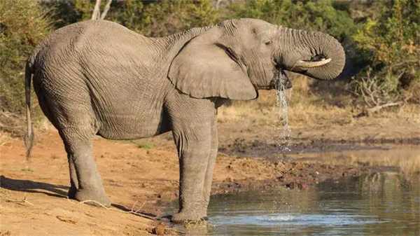 3、大象喜歡有水的環境,通常會將水吸入象鼻,然後噴到全身,大象還常常會用象鼻在自己的皮膚上噴上一層具有保護作用的泥土。