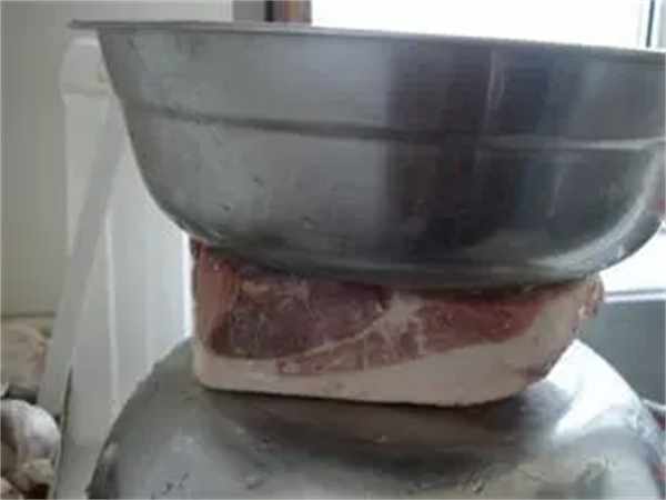 3、如果傢裡有鋁盆,可以把要解凍的肉放在兩個幹凈的鋁盆中間,上面的鋁盆可以裝些水將肉壓住,鋁制品導熱性強,可以很好的加速肉類解凍。