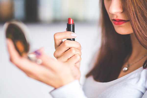 6、化妝最後一步是塗抹口紅,使得整體更有氣色,這樣一個完整的妝容就畫好瞭。