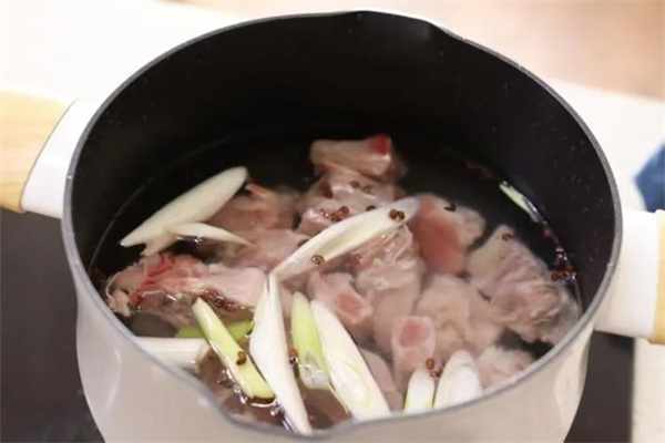 2、去除血水之後就可以放涼水下鍋煮瞭,清燉排骨不要加太多的調料,隻要加入適量的蔥段、生薑和花椒就可以瞭。