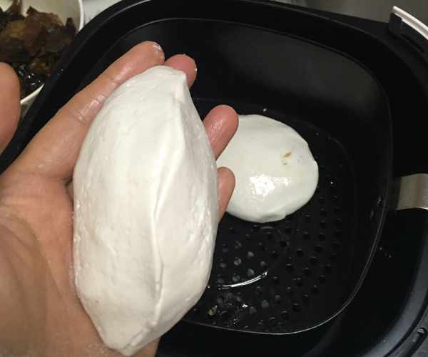 3、待面團醒發完成後,在空氣炸鍋的底部抹上適量油,並將面團放入空氣炸鍋。
