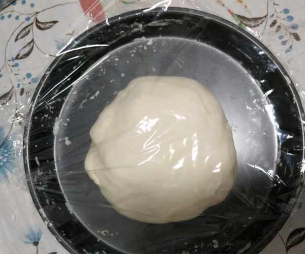 2、將它們揉成一個面團,並用保鮮膜包住面團,醒發半個小時左右。