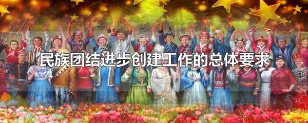 民族團結進步創建工作的總體要求是人文化、實體化、大眾化。總目標是中華民族一傢親,同心共築中國夢。理念是重在平時、重在交心、重在行動、重在基層。根本方向是鑄牢中華民族共同體意識。根本途徑是加強各民族交往交流交融。