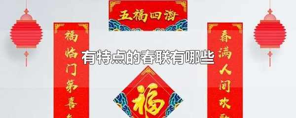 有特點的春聯有:1、新春富貴吉星照,佳年財源八方來。橫批:萬事亨通。2、歲通盛世傢傢富,人遇年華個個歡。橫批:皆大歡喜。3、傢過小康歡樂日,春回大地艷陽天。橫批:人心歡暢。