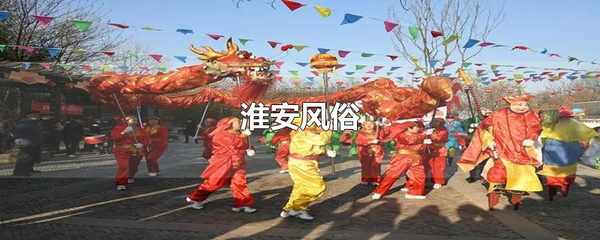淮安的風俗,從節日習俗上來看,春節時,淮北(如淮陰區等)通常與北方大部分地區相同,吃餃子,而淮南(如楚州區等)則通常吃元寶。年俗:臘月二十四,打掃傢裡的灰塵,準備迎新年。正月十五鬧花燈。二月初二:叫龍抬頭,小孩剔去胎毛。