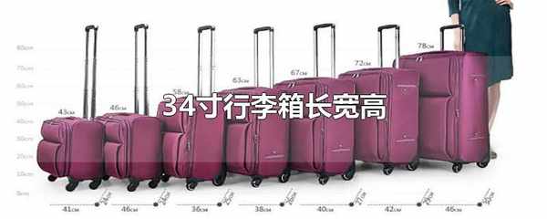 常見的34寸行李箱長寬高是長81cm,寬57cm,高35cm。使用高度是81cm加拉桿,大約100cm左右。隨身登機箱尺寸規定三邊尺寸之和不超過115cm,34寸的拉桿箱最適合於需要遠途旅行,或者自駕遊的人群。