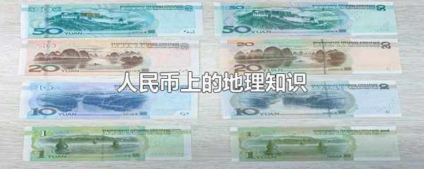 人民幣上的地理知識有:第五套人民幣100元的背面景點是人民大會堂,50元的背面景點是佈達拉宮,20元的背面景點是桂林市的陽朔縣山水,10元的背面景點是長江三峽的瞿塘峽夔門,5元的背面景點是泰山,1元的背面景點是杭州“西湖十景”的三潭印月等。