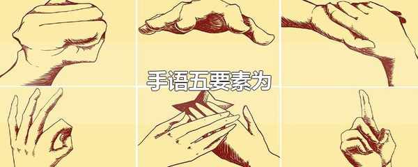 手語的五要素分別為手的形狀、手的動作、手的位置、手掌的方向和面部表情。手語指的是用手勢比劃動作,根據手勢的變化模擬形象或者音節,來構成一定意思或詞語,手語對聽障人和語言障礙者來說是最好的語言。