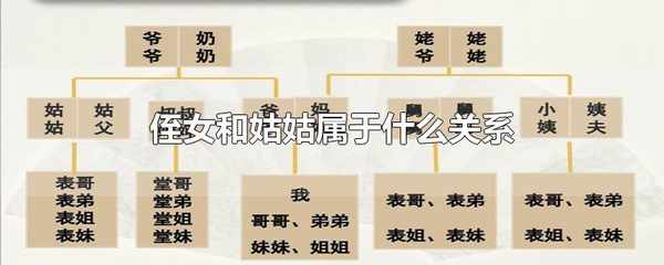侄女和姑姑屬於姑侄關系。姑姑:通常指父親的姐妹,有時也用於對無血緣關系女性長輩敬稱。侄女指的是哥、弟或其他同輩男性親屬的女兒。姑姑、侄女屬於親屬稱謂。