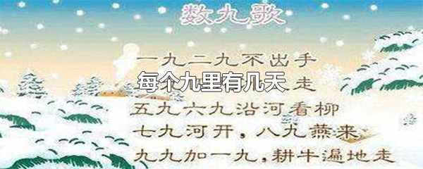 每個九裡有九天。數九又稱冬九九,指數九期間,每九天一個九,數九就是數日期,從一九數到九九,從冬至日當日數起,是中國民間一種計算寒天與春暖花開日期的方法。
