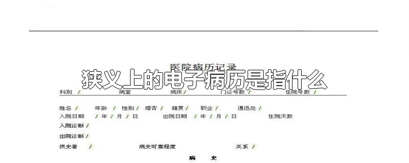 狹義上的電子病歷是指電子化的紙質病歷。電子病歷也叫做計算機化的病案系統或稱基於計算機的病人記錄,是用電子設備來保存、管理、傳輸數字化的醫療記錄,其內容包括紙張病歷的所有信息。