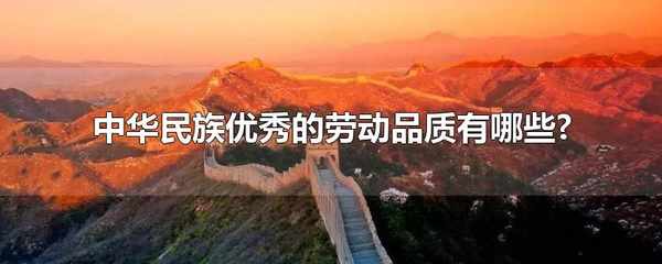 中華民族優秀的勞動品質有:艱苦奮鬥、勤奮、務實、肯幹、肯吃苦、專心致志、堅持、不懈努力、自食其力等。以上品質是我們中華民族精神的組成要素,在歷史長河中,支撐著我們民族不斷前進。