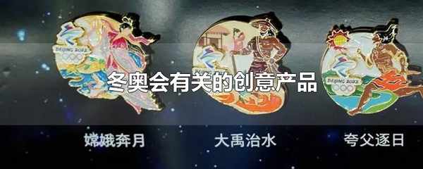 與冬奧會有關的創意產品如下:上古神話系列勛章、四大發明系列勛章、十二月令系列勛章、中國傳統美食系列勛章、文房四寶系列勛章等。古神話傳說包括嫦娥奔月、大禹治水、盤古開天、誇父逐日、女媧補天、精衛填海。
