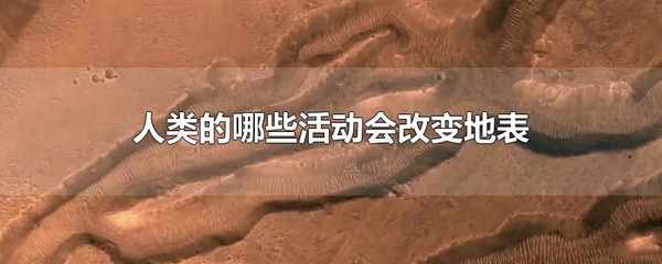 人類的填海造田、開挖河道、修建水庫、綠化沙漠等活動會改變地表,平整土地、修路架橋、毀林開荒、修造梯田、開挖水渠、攔河築壩、建造水庫、植樹造林、填海造陸等這些活動也會改變地表。