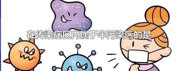 在傳染病區內,屬於半污染區的是醫護辦公室、病區內走廊、化驗室等,半污染區指有可能被病原微生物污染的區域。傳染病是由各種病原體引起的能在人與人、動物與動物或人與動物之間相互傳播的一類疾病。