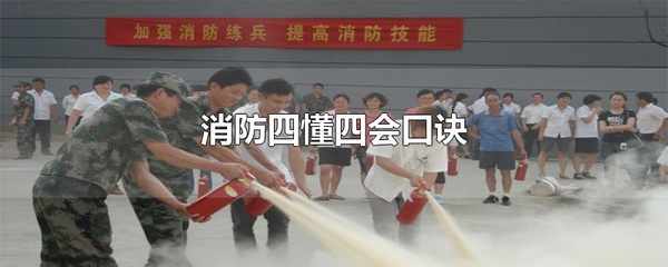 消防四懂四會口訣為:懂本崗位的火災危險性,懂預防火災的措施,懂滅火方法,懂逃生方法,會報警,會使用消防器材,會撲救初期火災,會組織人員疏散逃生。