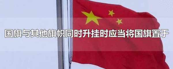 國旗與其他旗幟同時升掛時,應當將國旗置於中心、較高或者突出的位置。國旗是國傢的一種標志性旗幟,是國傢的象征,它通過一定的樣式、色彩和圖案反映一個國傢政治特色和歷史文化傳統。