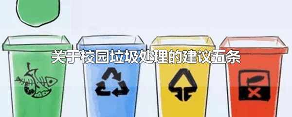 關於校園垃圾處理的建議:開展“爭當綠色環保小衛士”的活動。在校園廣播裡播出一些環保小常識。對校園加強環境管理。在學校四處的草坪裡立上切勿亂扔垃圾標語。設立垃圾桶的分類。
