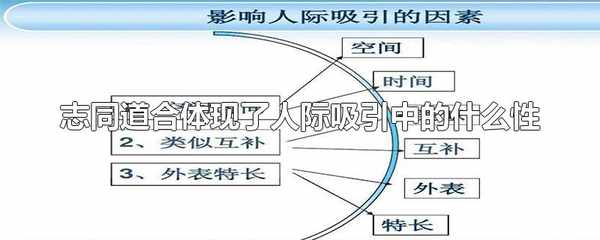 志同道合體現瞭人際吸引中的類似性。志同道合的意思是志向相同、道路一致,形容彼此理想、志趣相合,人際吸引是個體與他人之間情感上相互喜歡、相互需要,依賴的狀態,是人際關系中的一種肯定形式。