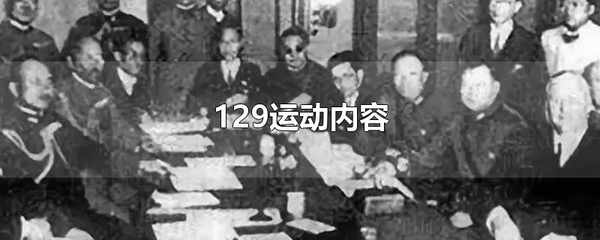 129運動內容:1935年12月9日,北平(北京)大中學生數千人舉行瞭抗日救國示威遊行,高呼“援助綏遠抗戰”、“各黨派聯合起來”等口號反對華北自治,反抗日本帝國主義,要求保全中國領土的完整。