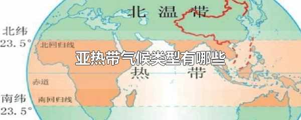 亞熱帶氣候類型有亞熱帶地中海氣候、亞熱帶季風性和季風性濕潤氣候、亞熱帶草原和沙漠氣候三種。亞熱帶氣候主要分佈在北緯25°-35°亞熱帶大陸東岸,夏季氣溫較高,降水豐沛,雨熱同期。
