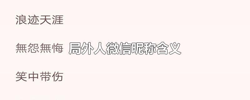 與局外人相似的微信昵稱還有逆水寒、偷心人、夜難眠、憶往夕、鳳棲梧、念心安、路人甲等。