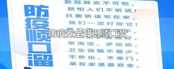 防疫安全知識順口溜:外出歸來勤洗手,通風換氣常開窗。不傳謠言不恐慌,洗手通風戴口罩。疫情莫去湊熱鬧,出門必須戴口罩。不聚餐不聚會,自我防護需謹記。疫情就是命令,防控就是責任。