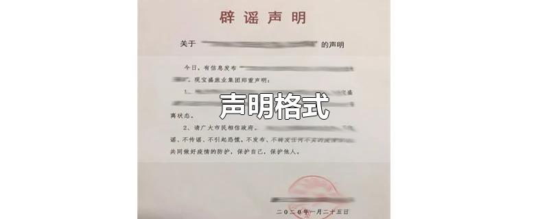 聲明格式一般為:標題、正文和尾部。標題可以隻寫“聲明”二字,也可以由事由和文種構成,比如“遺失聲明”,正文需要簡明扼要地寫出發聲明的原因,尾部包括署名、時間等。