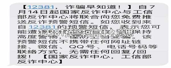 12381預警短信是電信網絡詐騙預警短信。12381的預警短信是國傢反詐中心與工信部反詐中心聯合向可能遭遇電信網絡詐騙的人免費推送反詐預警短信。該預警短信不攜帶任何網址鏈接、微信、QQ號、電話號碼等聯絡方式,無需任何回復或回撥。