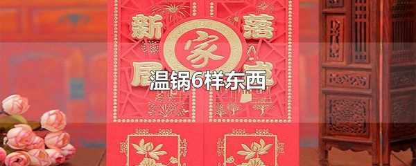 溫鍋的6樣東西為:米、紅紙、簸箕和新的掃帚、水、碗筷、火爐。其實溫鍋的東西也不僅限於這6樣,也可以送雞、魚、肉、酒等食物,以及裝飾物、鏡子、炊具、茶具等日常生活用品。