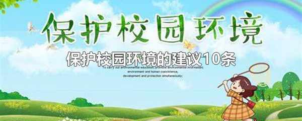 保護校園環境的建議:愛護公共設施、不隨意踐踏草坪、不亂扔果皮紙屑、不隨地吐痰、不要亂丟塑料袋、垃圾做好分類、保持個人衛生、愛護花草樹木、節約用紙、隨手關燈。