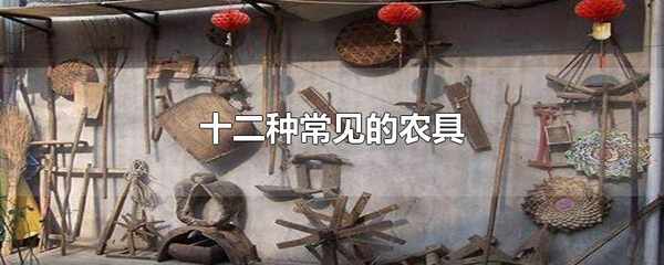 十二種常見的農具包括鐮刀、耙子、石磨、木犁、鋤頭、扁擔、籮筐、風車、板車、竹篩、鐵鍁和打谷機等。農具是農民在從事農業生產過程中用來改變勞動對象的器具。中國農業歷史悠久、地域廣闊、民族眾多,農具也豐富多彩。