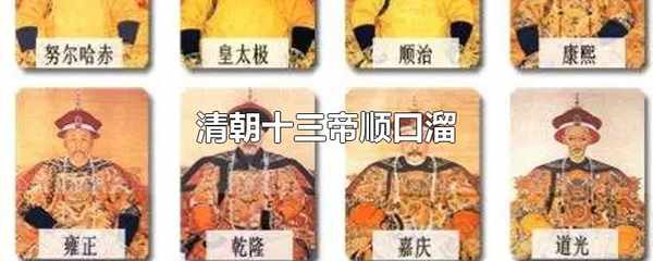 清朝十三帝順口溜為努爾哈赤皇太極,順治康熙雍正帝,乾隆嘉慶和道光,咸豐同治有慈禧,光緒執政不掌權,末代宣統笑溥儀,除此之外,還有努爾哈赤皇順康,雍乾嘉道咸同光,末代溥儀最悲傷。