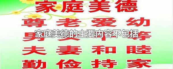 傢庭美德的主要內容不包括遵紀守法。傢庭美德的內容包括:尊老愛幼、男女平等、夫妻和睦、勤儉持傢、鄰裡互相。傢庭美德包括關於傢庭的道德觀念、道德規范和道德品質。
