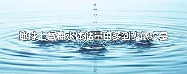 地球上各種水體儲量由多到少依次是:海洋水、陸地水、大氣水。地球的總儲水量約1386×10億立方米,其中海洋水約占96.5%,陸地水約占3.47%,大氣水約占0.001%。
