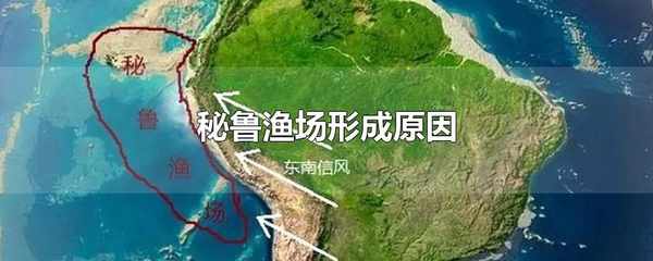 秘魯漁場形成的原因是東南信風從南美大陸吹向太平洋,使得秘魯沿岸的表層海水離岸向北流,底層海水上升補充洋流,同時將底層的營養鹽類帶到瞭表層,為魚蝦提供充足的餌料,所以形成瞭漁場。