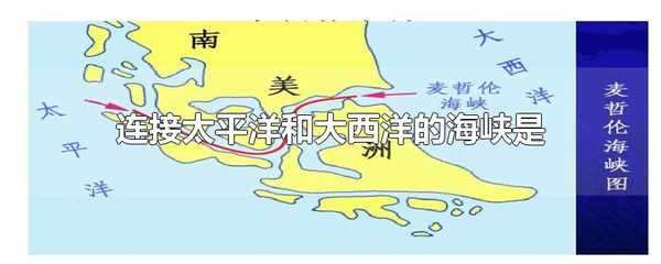 連接太平洋和大西洋的海峽是麥哲倫海峽。麥哲倫海峽位於南美洲大陸最南端,由火地島等島嶼圍合而成。葡萄牙航海傢麥哲倫於1520年首次通過該海峽進入太平洋,故得名。
