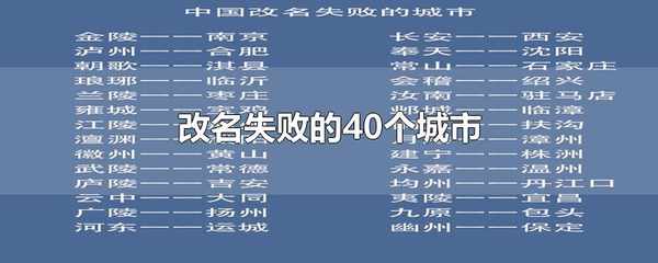 中國改名失敗的40個城市:汝南改為駐馬店,瑯琊改為為臨沂,九原改為包頭,常山改為石傢莊,幽州改為保定,蘭陵改為棗莊,廬州改為合肥,徽州改為黃山,長安改為西安。