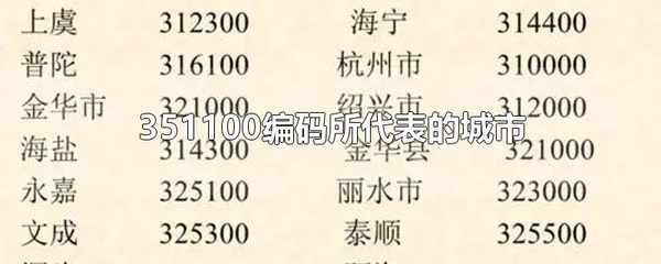 351100是莆田市的郵政區碼,前兩位數字表示省,第三位數字表示郵區,第四位數字表示縣(市),最後兩位數字表示投遞局(所)。